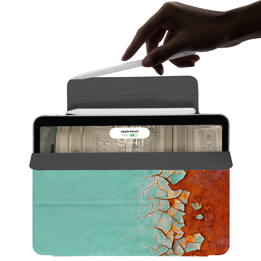 Elevate your iPad experience with the VistaCase Personalized iPad Slim Fit Case. Featuring an exquisitely detailed Rusted Metal design, this case offers both style and functionality. Crafted with a durable fabric exterior and a soft interior lining, your iPad is protected from every angle. The case includes built-in storage and a cutout for easy magnetic attachment of your Pencil, ensuring it's always within reach.